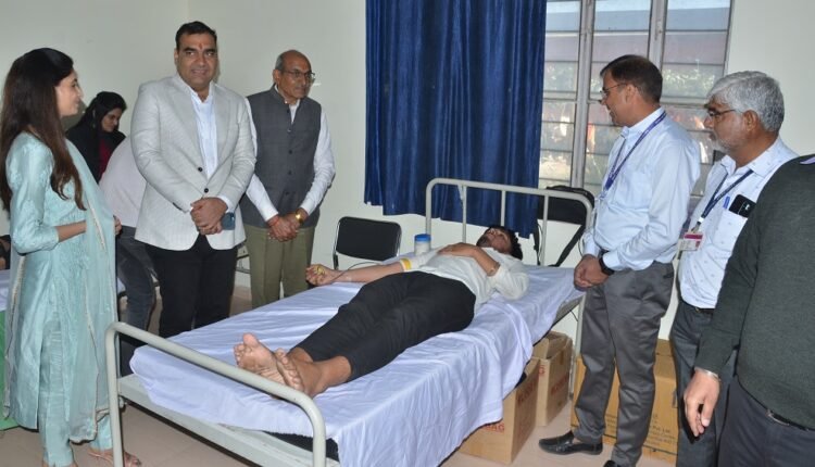 जयपुर रोड़ स्थित शेखावाटी ग्रुप ऑफ इंस्टीटयूशन्स द्वारा स्वैच्छिक महारक्त दान का आयोजन किया गया बतौर मुख्य अतिथि प्रो. डॉ. भागीरथ सिंह माननीय कुलपति पण्डित दीनदयाल उपाध्याय शेखावाटी विश्ववि़द्यालय, सीकर ने उदघाटन किया. प्रो. सिंह ने अपने उदबोधन मं बोलते हुए कहा कि रक्तदान एक महान काम है और हमारी समृद्ध संस्कृति तथा सेवा और सहयोग की परंपरा को देखते हुए मैं, सभी नागरिकों से आगे आने तथा देशभर में विशाल स्वैच्छिक रक्तदान अभियान – रक्तदान अमृत महोत्सव के तौर पर रक्त दान करने की अपील करता हूं. रक्तदान से न केवल राष्ट्रीय आवश्यकता पूरी होती है बल्कि यह समाज एवं मानवता के प्रति एक बड़ी सेवा भी है.’’ उन्होंने स्वैच्छिक रक्तदान के महत्व पर जोर देते हुए कहा, ‘‘रक्तदान अमृत महोसत्व, आजादी का अमृत महोत्सव के जश्न समारोह का हिस्सा है.’’ भारत में 2021 के आंकड़ों के मुताबिक सालाना करीब 1.5 करोड़ यूनिट रक्त की आवश्यकता होती है.संस्थान के चेयरमेन रणजीत सिंह ने अपने स्वागत उदबोधन में बोलते हुए कहा कि हर दो सेकंड में भारत म एक मरीज को रक्त की आवश्यकता होती है और प्रत्येक तीन मंे से एक व्यक्ति को अपने जीवन में कभी न कभी रक्त की आवश्यकता पड़ती है. प्रौद्योगिकी तरक्की के बावजूद रक्त का कोई विकल्प नहीं है और एक यूिनट रक्त तीन जिंदगियां बचा सकता है.’’ उन्होंने शिविर में दानदाताओं से मुलाकात की और उनके प्रयासों की सराहना की. रक्तदान को लेकर भ्रांति दूर करते हुए उन्होंने कहा, ‘‘एक व्यक्ति के शरीर में पांच से छह लीटर खून होता है और वह हर 90 दिन में रक्तदान कर सकता है.’’ इसके अलावा लोगों को नियमित रक्तदान करने के प्रति जागरूक किया जाएगा. रक्त की एक यूनिट का मतलब 350 मिलीलीटर रक्त होता है.उन्होंने बोलते हुए कहा कि शेखावाटी ग्रुप ऑफ इंस्टीटयूशन्स केवल कॉलेज ही नहीं संचालित करता है अपितु मानवता के कार्या में बड़ चढ़कर हिस्सा लेता है आज उसी कड़ी में एक विशाल स्वैच्कि रक्तदान षिविर का आयोजन प्रत्येक वर्ष की भांति आयोजित किया गया है, जिसमें 175 यूनिट रक्त संरक्षित किया गया. संस्थान कॉविड महामारी के समय भी काढ़ा जीवन रक्षक दवाईयां सैनेटाइजर एवं मास्क वितरण किया.संस्थान की सचिव स्नेहलता चौधरी ने अपने उदबोधन में बोलते हुए कहा कि इस प्रकार का रक्त शिविर का आयोजन एक सकारात्मक रूप लेगा क्योंकि रक्त का निर्माण किसी फैक्टीं में नहीं होता है अपितु मनुष्य के रक्त शिराओं मे ही रक्त निर्माण होता है. एक व्यक्ति के रक्त दान देनेे से तीन जिन्दगी बचाई जा सकती है. प्रो. डॉ. के.के. व्यास ने धन्यवाद ज्ञापित करते हुए कहा कि इस प्रकार का आयोजन में मुख्य अतिथि एवं अतिथ की संवैदनशीलता अपने आप मंे काबिले तारीफ है. इस कार्यक्रम में आये हु