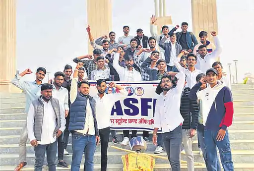 शेखावाटी यूनिवर्सिटी में डीएएसएफआई और एसएफआई कार्यकर्ताओं का प्रदर्शन…