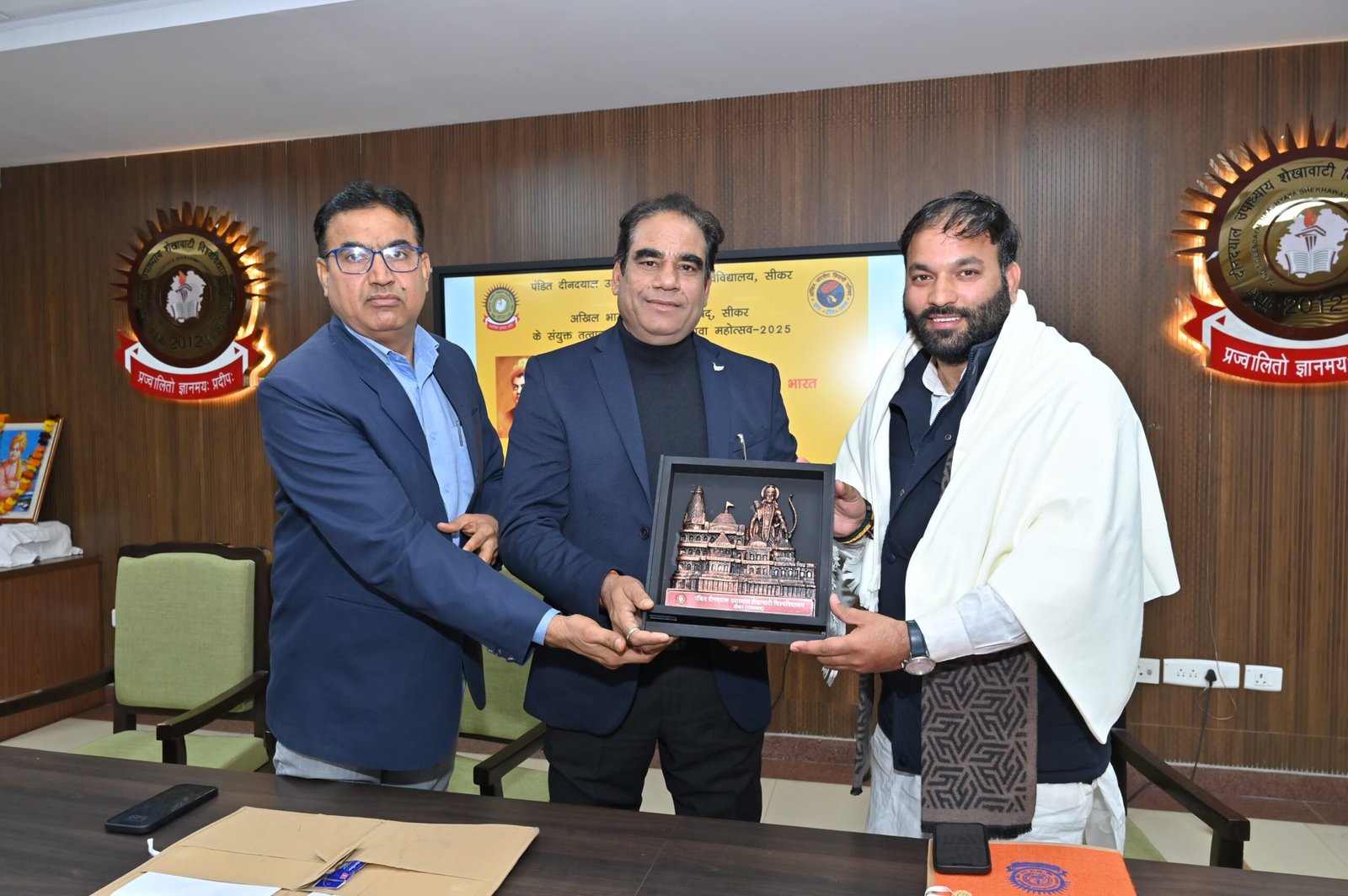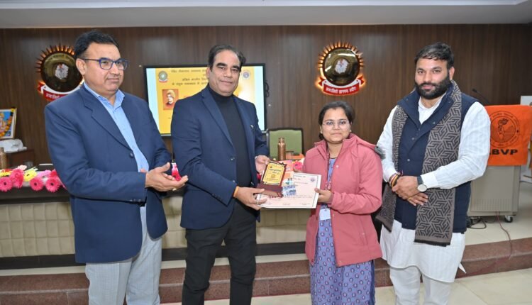पंडित दीनदयाल उपाध्याय शेखावाटी विश्वविद्यालय,सीकर एवं एबीवीपी सीकर के संयुक्त तत्वावधान में रविवार को विश्वविद्यालय परिसर में “भारत बोध संपन्न युवा एवं विकसित भारत” विषय पर विचार गोष्ठी और पुरस्कार वितरण समारोह आयोजित किया गया। कार्यक्रम की शुरुआत मां सरस्वती और विवेकानंद जी की प्रतिमा के समक्ष दीप प्रज्वलन के साथ हुई।