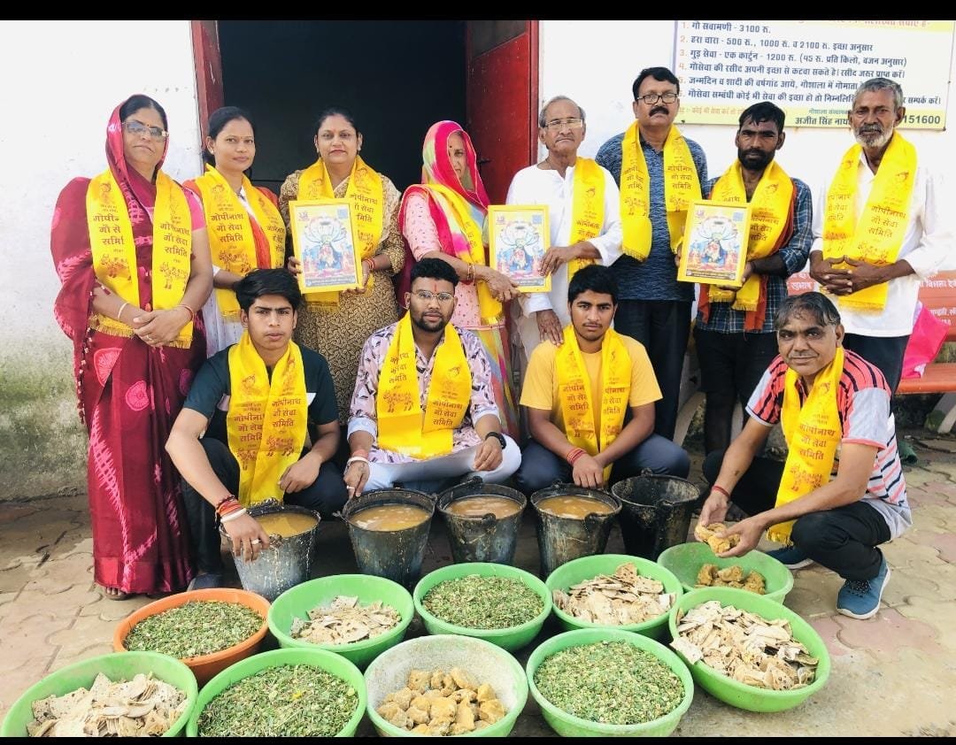 हरे चारे और गुड़-दलिए का भोग, गौ माता की पूजा, और गोसेवकों को सम्मानित करते हुए अजीत सिंह जी और अन्नपूर्णा माताजी के सानिध्य में विशेष आयोजन