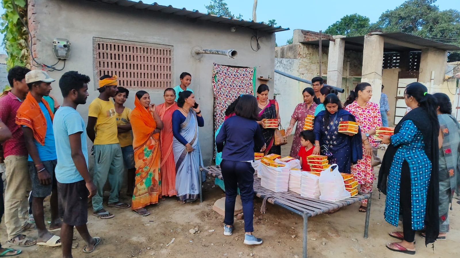 हाथी टीबा बगीची स्थित कच्ची बस्ती में जरूरतमंदों को पूड़ी-सब्जी और मिठाई के पैकेट वितरित, उमा जी सैनी का रहा विशेष सहयोग