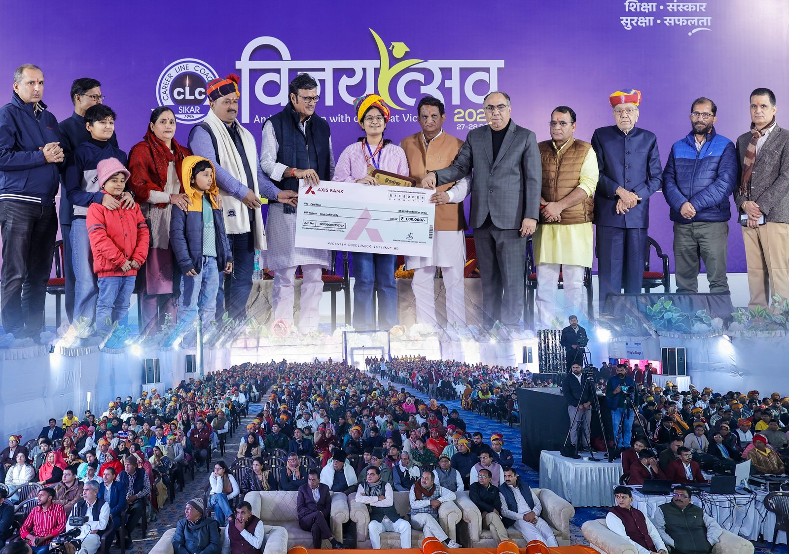 सीएलसी निदेशक इंजीनियर श्रवण चौधरी ने अपने संबोधन में कहा की सीएलसी अपनी शुरुआत से ही प्रतिभाओं को तलाशकर तराशने का काम करती आई है और अब सीएलसी अपने अभियान 3.0 पर काम कर रही है। 3.0 के बारे के बताते हुए चौधरी ने कहा की सीएलसी 2 पीढ़ियों को पढ़ा चुकी है और ऐसे कई उदाहरण दिए जिनमे विजयोत्सव में सम्मानित हो रहे छात्रों के माता या पिता भी सीएलसी में पढ़कर इसी विजय मंच पर सम्मानित हो चुके है। चौधरी ने कहा की दो पीढ़ियों को पढ़ाने के बाद अब सीएलसी युवा और अपडेटेड सोच वाले सीएलसी सीईओ साहिल चौधरी और सीएलसी सीओओ समर चौधरी के नेतृत्व में तीसरी पीढ़ी को सफलता दिलाने के लिए तैयार है। चौधरी ने बताया की सीएलसी की शुरुआत के समय एक सपना देखा था की हर गांव से डॉक्टर, इंजीनियर बनाना है और सीएलसी का यह सपना पूरा हो चुका है। इसके लिए चौधरी ने सभी छात्रों तथा अभिभावकों का आभार जताया। कार्यक्रम के दौरान इस वर्ष एम्स दिल्ली में प्रवेश पाने वाले ओजल राव, स्वीटी ढाका और सुनील कुमार तथा आईआईटी बॉम्बे में चयनित प्रशांत मीणा, आईआईटी बीएचयू में चयनित घनेंद्र जुरासिया तथा आईआईटी गुवाहाटी में चयनित मुकुल यादव ने मंच से अपने विचार साझा करते हुए अपनी सफलता में सीएलसी के योगदान के लिए सीएलसी तथा पूरी शिक्षक टीम का आभार जताया। विजयोत्सव के दौरान चयनित छात्रों को 10 लाख से ज्यादा के नकद पुरस्कार का वितरण किया गया। सीएलसी सीईओ साहिल चौधरी ने बताया की 2 दिवसीय विजयोत्सव के पहले दिन 1000 चयनित छात्रों का सम्मान किया गया है और कल दुसरे दिन भी लगभग एक हजार छात्रों का सम्मान किया जायेगा। इस दौरान सीएलसी सीओओ समर चौधरी, सीएलसी एचआर हेड वीरेंद्र चौधरी तथा समस्त शिक्षक एवं गणमान्य नागरिक उपस्थित रहे। सीएलसी परिवार ने विजयोत्सव में पधारने वाले सभी छात्रों, अभिभावकों तथा शुभचिंतकों का आभार जताया।