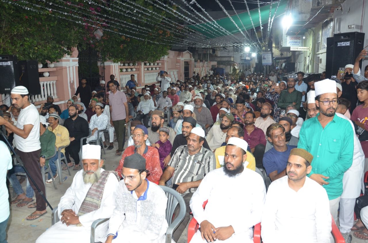 मोहल्ला हुसैन गंज में मस्जिद पीर अली बख्श के पास आयोजित जलसे में नशा, जुआ, और ब्याज जैसी बुराइयों से बचने और मानव सेवा पर जोर, जयपुर के नातख्वान इमरान जयपुरी ने पेश की हम्द-नात