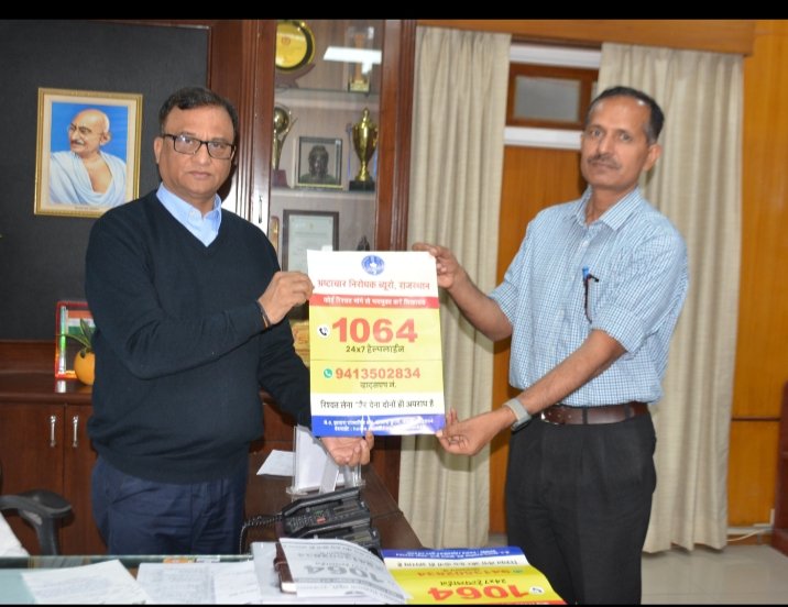सीकर, । भ्रष्टाचार निरोधक ब्यूरो (एसीबी) सीकर की ओर से जन जागरूकता अभियान चलाया जा रहा है। इसी के तहत जिला कलेक्टर मुकुल शर्मा एवं एसीबी सीकर के डिप्टी एसपी रविंद्र सिंह शेखावत द्वारा एसीबी के टोल फ्री नंबर 1060 का पोस्टर विमोचन किया गया।
