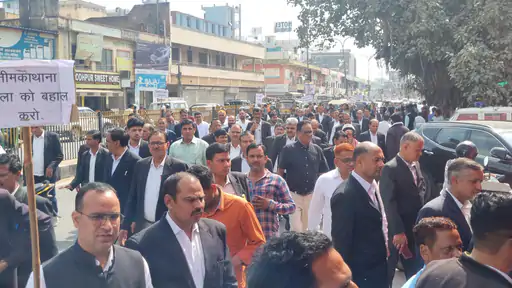 सीकर में संभाग बनाने और नीमकाथाना जिले को निरस्त करने के खिलाफ अभिभाषक संघ संघर्ष समिति का क्रमिक अनशन सोमवार को भी जारी रहा, जिससे न्यायालयों में कार्य स्थगित हो गया। इसके साथ ही अधिवक्ताओं ने अनशन स्थल से तापड़िया बगीची तक मौन जुलूस निकाला। संघ के महासचिव नरेश भूकर के अनुसार, अनशन पर अध्यक्ष भागीरथमल जाखड़, एडवोकेट मोहम्मद रफीक गौड़, महेंद्र प्रताप सामोता, और अन्य कई सदस्य बैठे। समिति को समर्थन देने के लिए कांग्रेस, टैक्स बार एसोसिएशन और अन्य प्रमुख समाजिक और राजनैतिक हस्तियां भी धरने पर पहुंचीं।