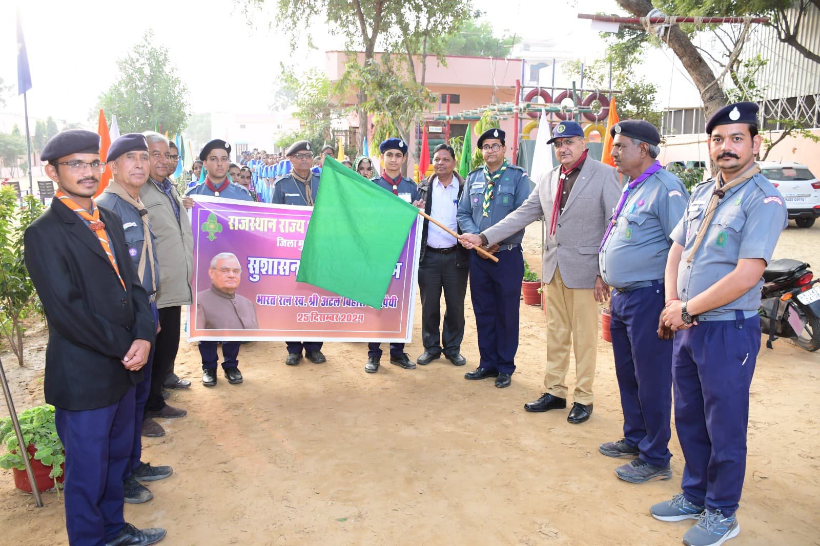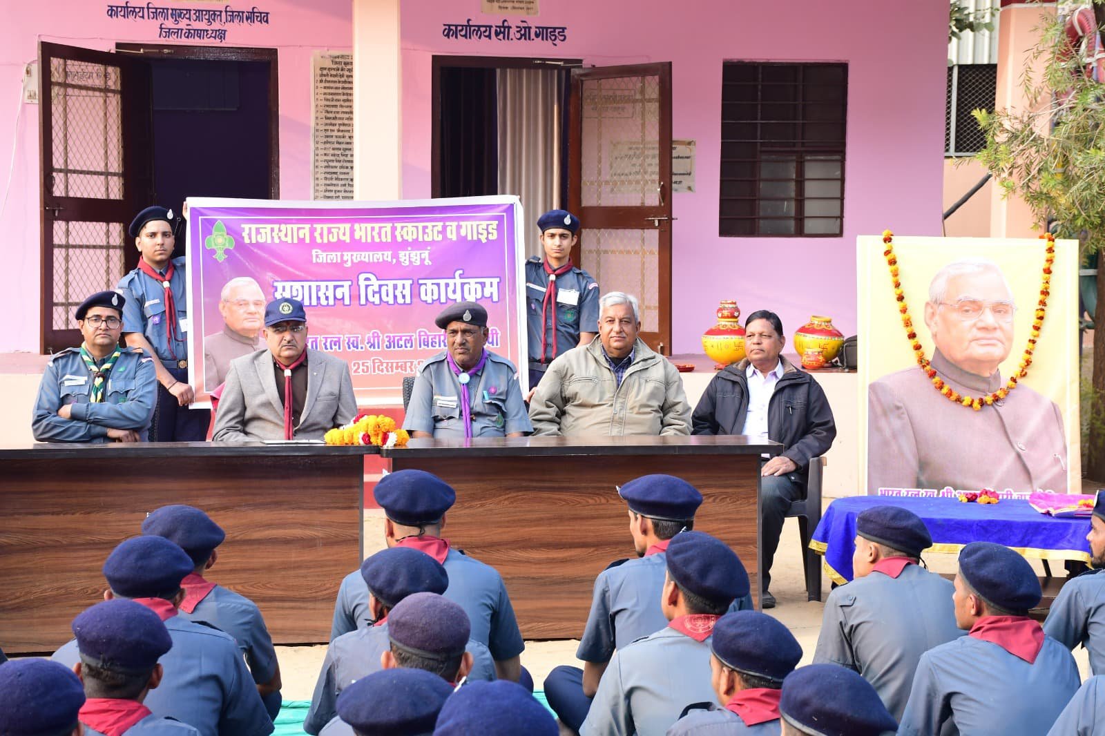 राजस्थान राज्य भारत स्काउट गाइड जिला मुख्यालय झुंझुनू के तत्वावधान में भारत रत्न पूर्व प्रधानमंत्री स्व. श्री अटल बिहारी वाजपेयी के जन्म शताब्दी वर्ष को सुशासन दिवस के रूप में स्काउट गाइड कार्यालय में मुख्य कार्यकारी अधिकारी जिला परिषद कैलाश चंद्र शर्मा के मुख्य आतिथ्य में समारोहपूर्वक मनाया गया।