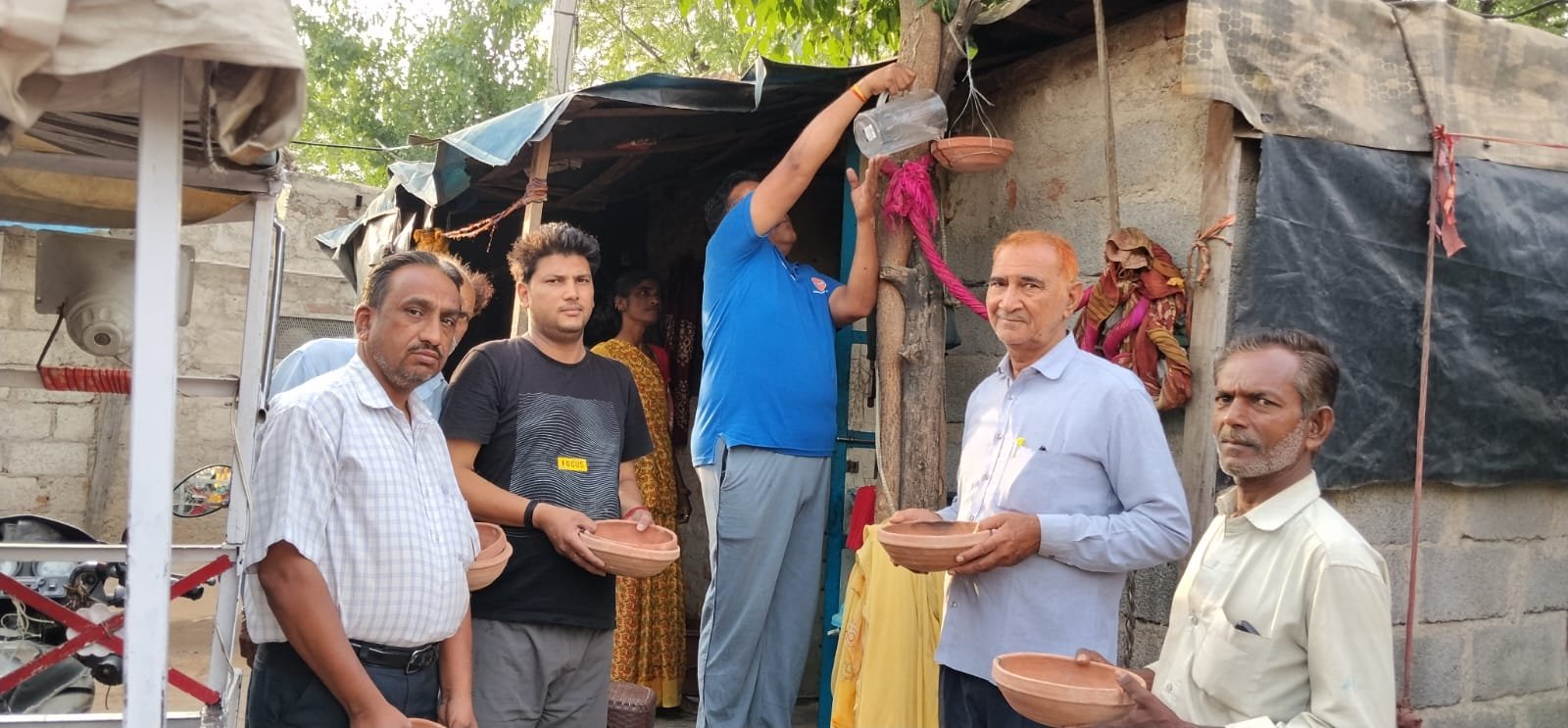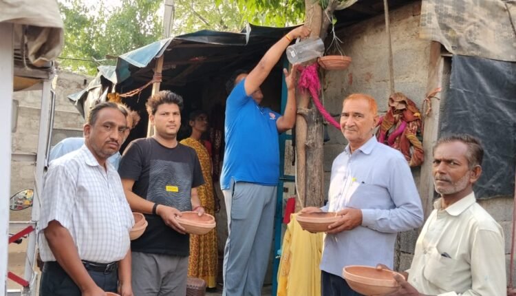 सेवा भाव की एक गहरी अलख, मूक पक्षियों की प्यास बुझाने के लिए कच्ची बस्ती में परिंडे लगाए