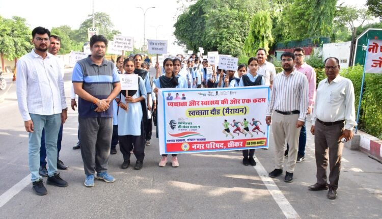 स्वच्छता ही सेवा अभियान के तहत बुधवार को प्रातः नगर परिषद द्वारा एस.के. स्कूल के अध्यापकों व छात्र छात्राओं के साथ एस. के. स्कूल से बजरंग कांटा होते हुए कल्याण सर्किल तक स्वच्छता रैली निकाली गई।