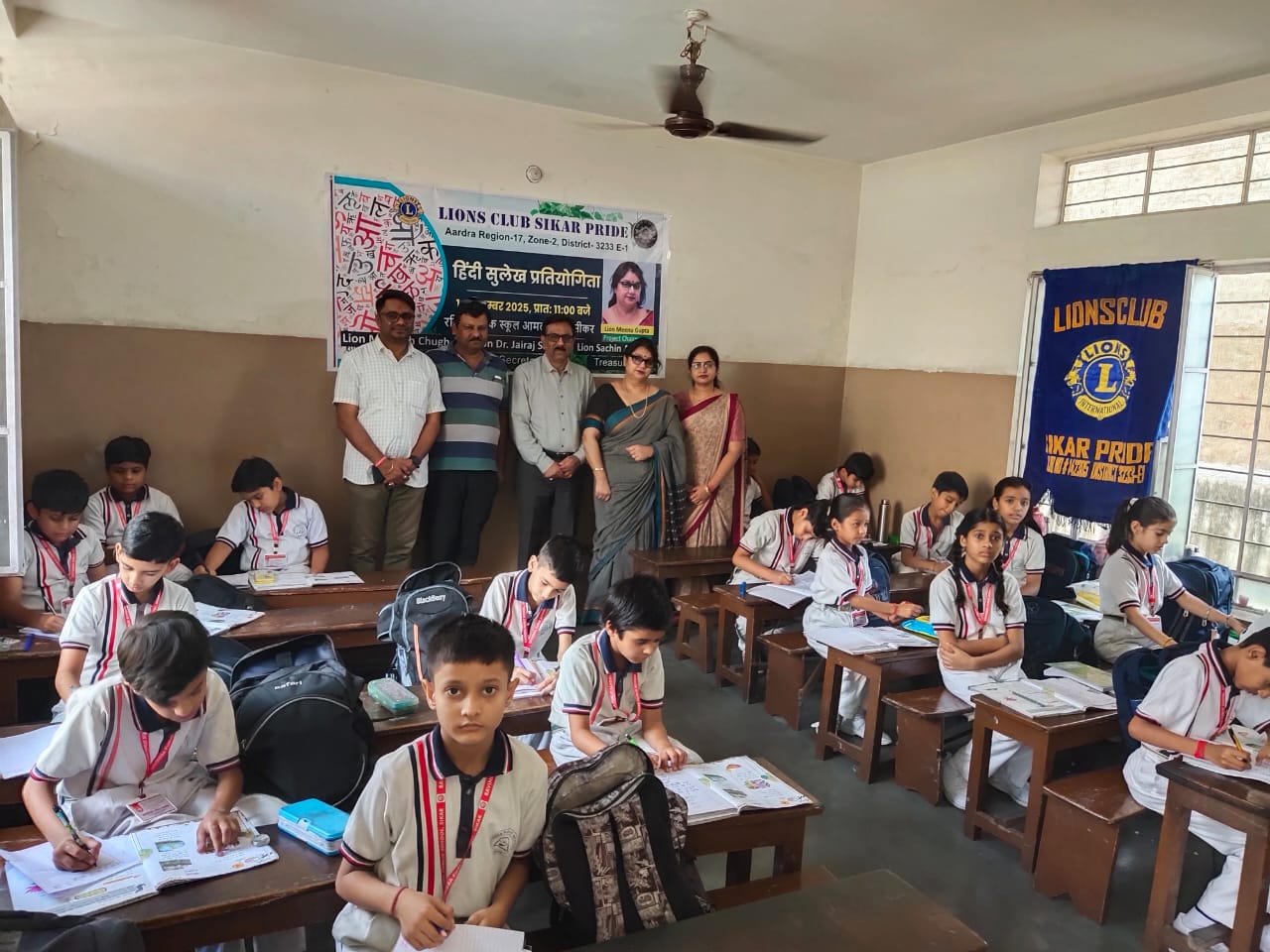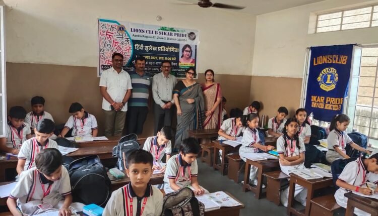 हिंदी दिवस के उपलक्ष्य में आज रविंद्र पब्लिक स्कूल, आमली रोड, सीकर में लायंस क्लब सीकर प्राइड द्वारा हिंदी सुलेख प्रतियोगिता का आयोजन किया गया। कार्यक्रम प्रातः 11 बजे प्रारंभ हुआ। प्रतियोगिता का आयोजन दो वर्गों में किया गया। जिसमे प्रथम वर्ग मे कक्षा 3 से कक्षा 6 तक अथवा द्वितीय वर्ग मे कक्षा 7 से कक्षा 10 तक छात्र-छात्राओं प्रतियोगिता में बढ़-चढ़कर भाग लिया। उत्कृष्ट प्रदर्शन करने वाले छात्रों को प्रथम, द्वितीय एवं तृतीय स्थान प्राप्त करने पर दोनों वर्गों में पुरस्कार देकर सम्मानित किया गया। प्रतियोगिता के दौरान बच्चों में भाषा और लेखन कौशल को लेकर उत्साह एवं गंभीरता देखने को मिली। कार्यक्रम की अध्यक्षता क्लब अध्यक्ष लायन मोहनीश चुघ ने की। अपने संबोधन में उन्होंने हिंदी भाषा और सुलेख की महत्ता बताते हुए कहा कि हिंदी हमारी सांस्कृतिक पहचान है और सुलेख से बच्चों में धैर्य, अनुशासन और अभिव्यक्ति की क्षमता विकसित होती है। यह प्रतियोगिता बच्चों में भाषा के प्रति प्रेम, सौंदर्यबोध और आत्म-अभिव्यक्ति को बढ़ावा देने के उद्देश्य से आयोजित की गई। कार्यक्रम का समापन पुरस्कार वितरण के साथ हुआ। कार्यक्रम का संचालन प्रोजेक्ट चेयरपर्सन लायन मीनू गुप्ता द्वारा किया गया। इस दौरान लायन राजीव गुप्ता, लायन मनोज अग्रवाल सहित अन्य लायन सदस्य उपस्थित रहे और प्रतियोगिता को सफल बनाने में सहयोग दिया।