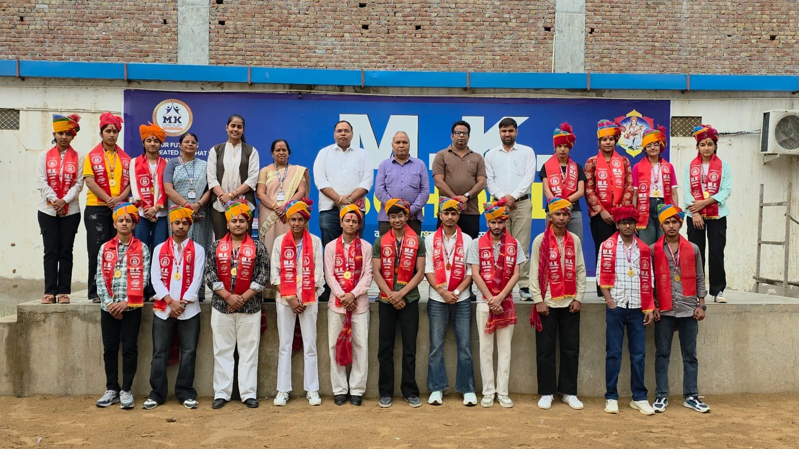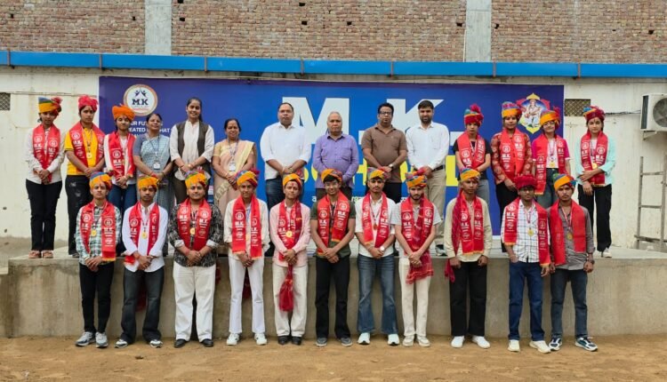 पिपराली रोड़ स्थित एम. के. मेमोरियल शिक्षण संस्थान में आज XII Sci./Arts/Comm. संकाय में सर्वश्रेष्ठ अंक प्राप्त करने वाले होनहार विद्यार्थियों का सम्मान समारोह आयोजित किया गया। संस्थान के चेयरमैन श्री महावीर प्रसाद ढ़ाका ने बताया कि इस बार भी एम. के. स्कूल का परीक्षा परिणाम शानदार रहा। XII Sci. में पलक कुमावत ने 97%, XII Comm. में पियूष कुमावत ने 96% एवं XII Arts में तेजस्विनी शर्मा ने 94% अंक प्राप्त कर विद्यालय एवं अपने परिवार का नाम रोशन किया। विद्यालय का परीक्षा परिणाम शत प्रतिशत रहा। संस्थान के सह निदेशक इंजि. मनीष ढ़ाका ने सम्मान समारोह में विद्यार्थियों को प्रोत्साहित करते हुये कहा कि विद्यार्थियों को कड़ी मेहनत और लगन से अपने लक्ष्य को प्राप्त करने का प्रयास हमेशा करते रहना चाहिये। सम्मान समारोह में होनहार विद्यार्थियों को साफा दुपट्टा पहनाकर एवं मिठाई खिलाकर प्रोत्साहित किया गया। इस अवसर पर विद्यालय की प्रधानाचार्या श्रीमती संगीता शर्मा, मैनेजिंग डारेक्टर श्री संजय शर्मा, श्री हरि, अकादमिक प्रमुख सु श्री नेहा वर्मा एवं सभी स्टाॅफ सदस्य उपस्थित रहें।
