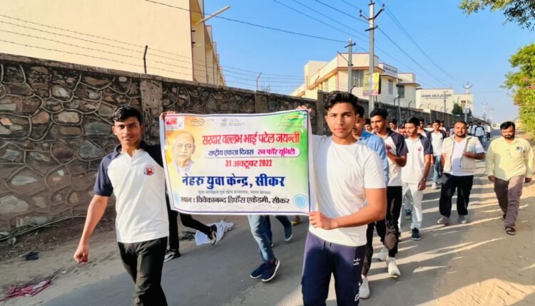 भारत सरकार के युवा मामले एवं खेल मंत्रालय के नेहरू युवा केन्द्र सीकर द्वारा लोह पुरूष सरदार वल्लभ भाई पटेल की जयंति राष्ट्रीय एकता दिवस के रूप में मनाई गई. नेहरू युवा केन्द्र के जिला युवा अधिकारी तरुण जोशी ने बताया कि इस अवसर पर केन्द्र के राष्ट्रीय युवा स्वंयसेवकों एवं विभिन्न युवा मण्डलों के कार्यकर्ताओं द्वारा रन फॉर यूनिटी का आयोजन कर राष्ट्रीय एकता की शपथ ली. सीकर ज़िले के विभिन्न युवा मंडलों ने 123 यूनिटी रन आयोजित किये. इस अवसर पर उपस्थित युवाओं को राष्ट्र की एकता, अखण्डता और सुरक्षा को बनाये रखने के साथ ही सरदार वल्लभ भाई पटेल के आदर्श को जीवन में आत्मसात करने का संदेश दिया.