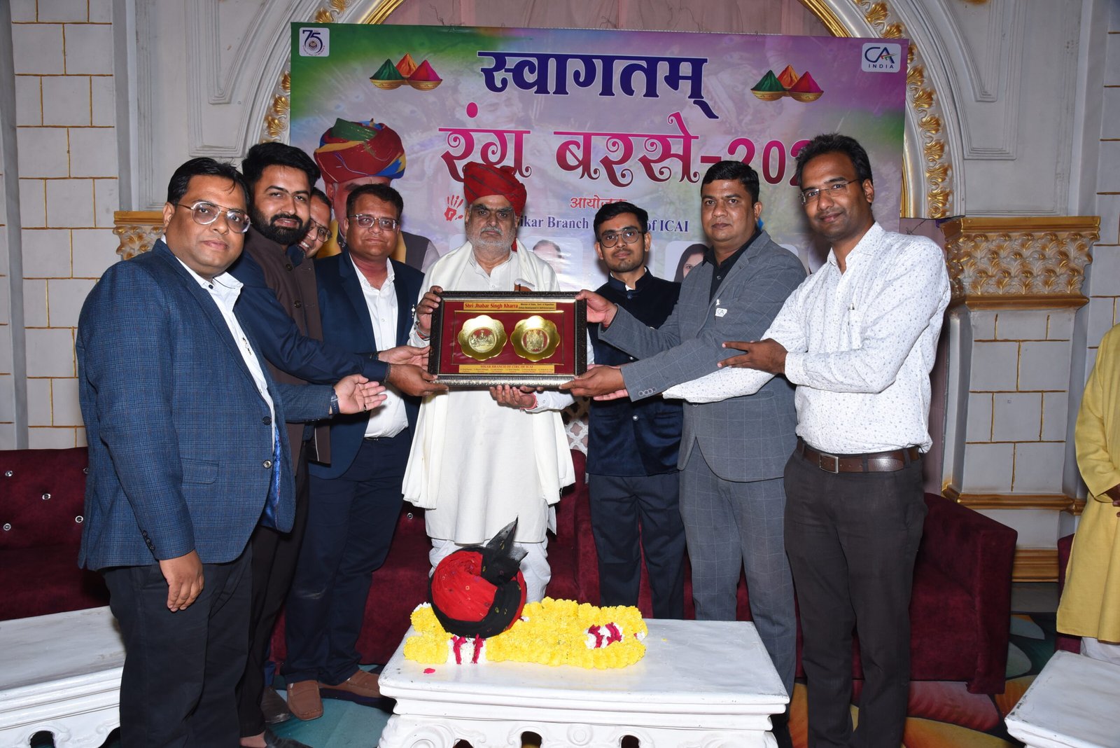 भारतीय सनदी लेखाकार संस्थान की सीकर शाखा द्वारा कल्याणम मैरिज गार्डन, सांवली रोड, सीकर में होली स्नेह मिलन कार्यक्रम “रंग बरसे 2025“ का आयोजन नगरीय विकास एवं स्वायत्त शासन विभाग मंत्री श्री झाबर सिंह खर्रा की अध्यक्षता में आयोजित किया गया। इस कार्यक्रम में रंगीलो सीकर के सदस्यों द्वारा चंग, ढ़प एवं बांसूरी की धुन पर होली की धमाल और विभिन्न गीतों के साथ अलवर जिले से आए कलाकारों द्वारा मयूर नृत्य, कृष्ण महारास जैसी रोचक प्रस्तुतियां दी गई। कार्यक्रम मंत्री श्री झाबर सिंह खर्रा के साथ ही सीआईआरसी कानपुर के अध्यक्ष सी ए अंकुर कुमार गुप्ता का भी सम्मान किया गया।